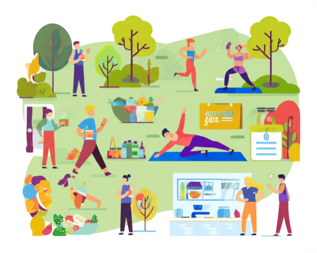 運動大致可分成有氧、肌力和伸展類型。有氧活動如快步走、慢跑、游泳或騎車,能強化心肺、促進血液流暢,幫助管理體重和血糖。肌力練習如啞鈴訓練或伏地挺身,則提升肌肉力和骨密度,防範骨鬆和意外跌倒。伸展則增加柔韌性和關節靈活,降低受傷機會。美國疾病管制與預防中心 (CDC) 推薦,成人每週至少 150 分鐘中等有氧或 75 分鐘高強度有氧,加上兩次肌力訓練。舉例,在辦公室附近散步,就能輕鬆達成部分目標,漸漸融入生活。